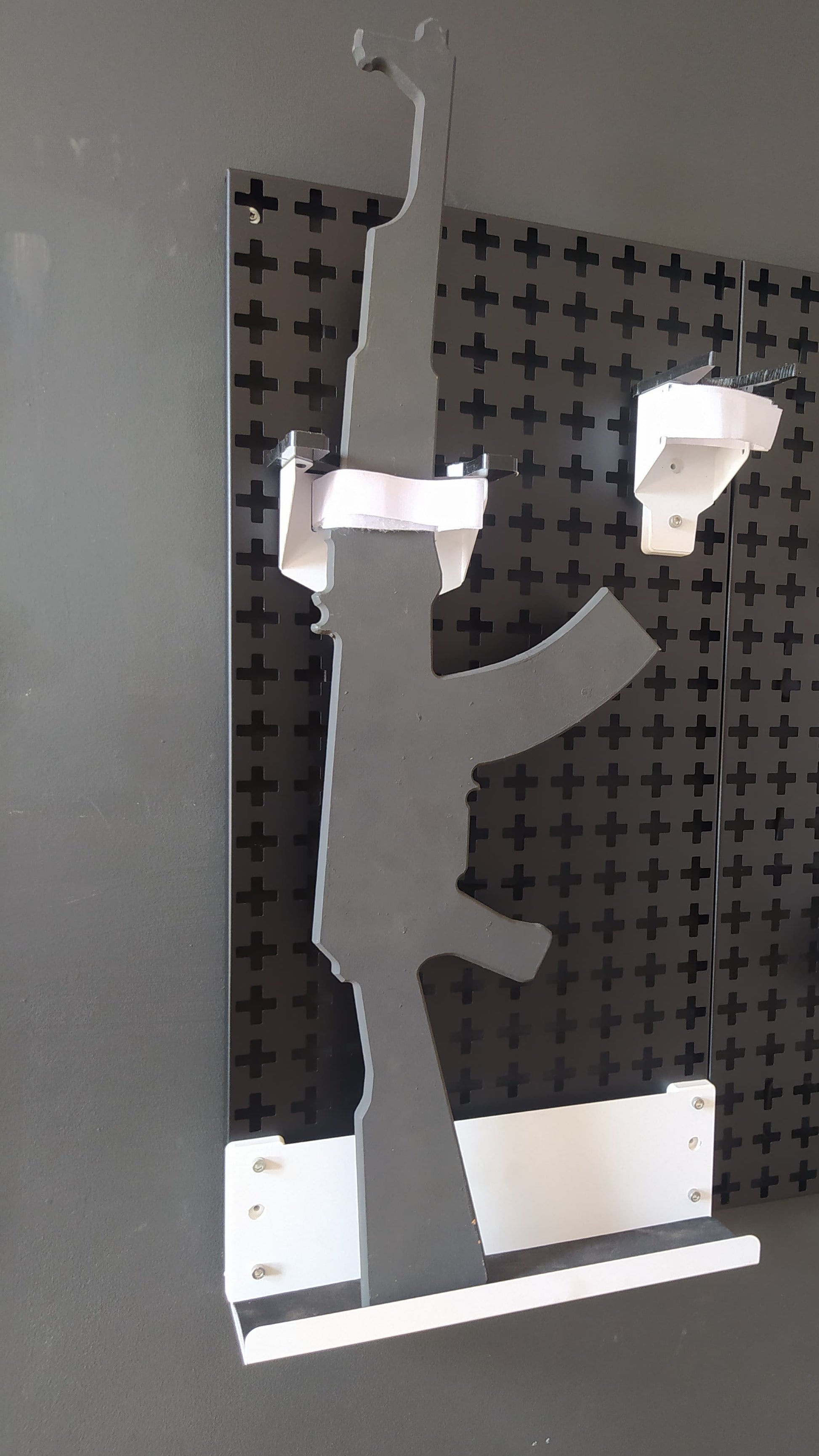 Designed for space-efficient firearm storage, this mount supports the upper section of a rifle in a vertical-sideways position, keeping it hugged close to the pegboard. Paired with the SlimLine Shelf, which secures the buttstock, this system allows for a low-profile, out-of-the-way storage solution—perfect for tight spaces. Includes a heavy-duty Velcro strap for added security.