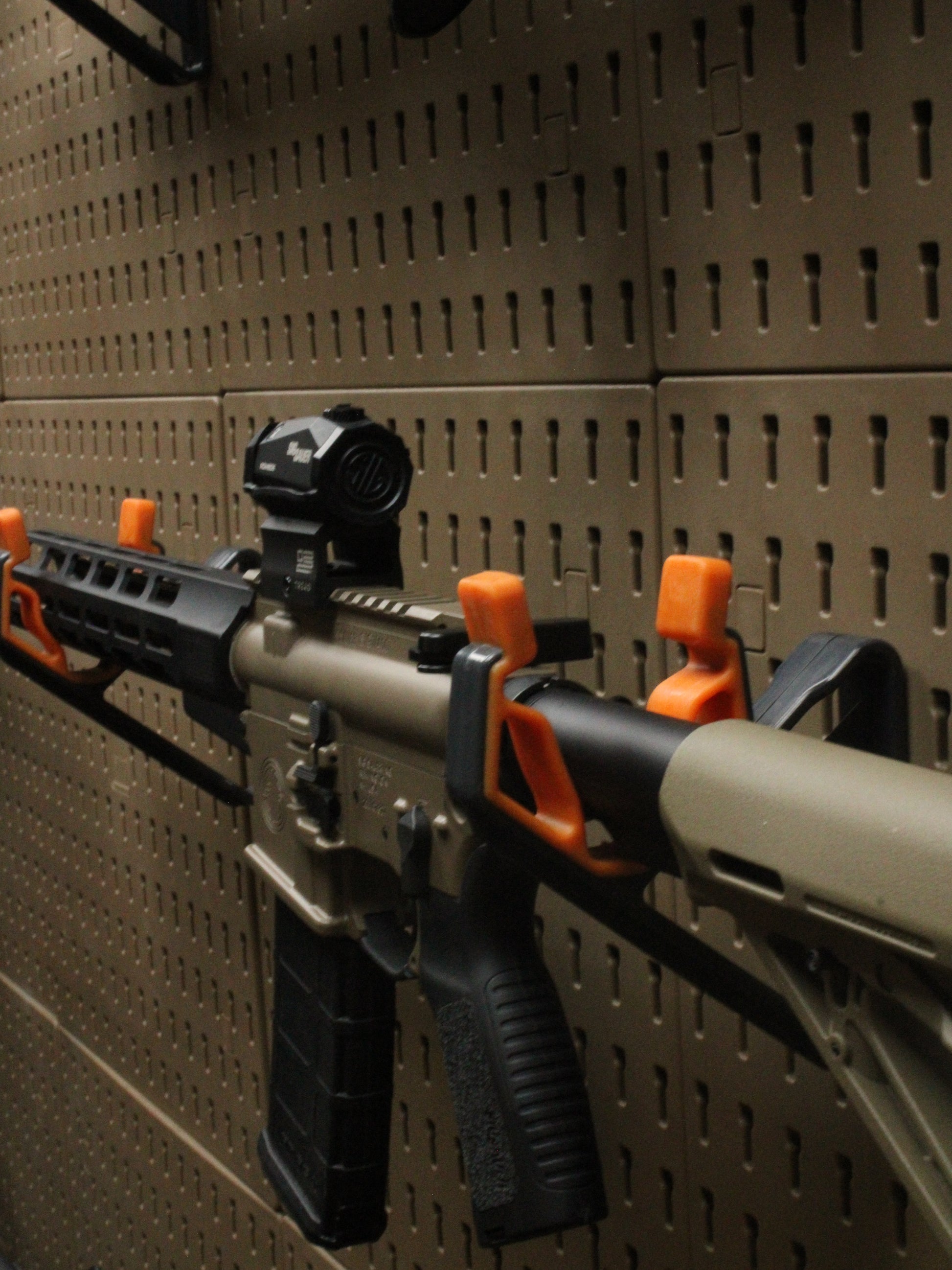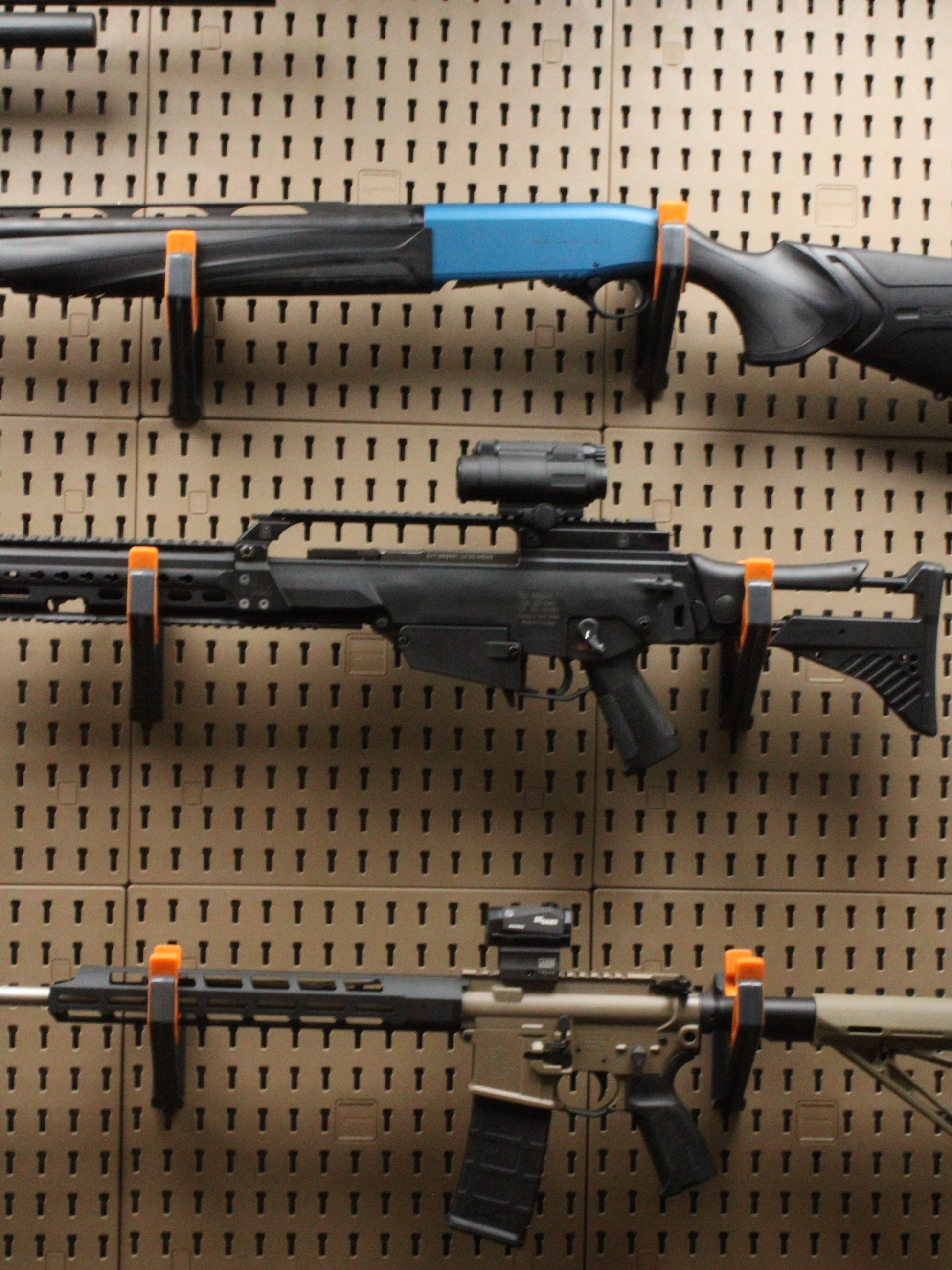 Our rifle kit, which was sold at Huntex 2024, is now available online. With 6 of our new Firearm holder accessories, Users can display 3 firearms of their choice, whether it be a pistol a rifle, or a mix, our pegboard system gives you the flexibility to display what you want, how you want to.