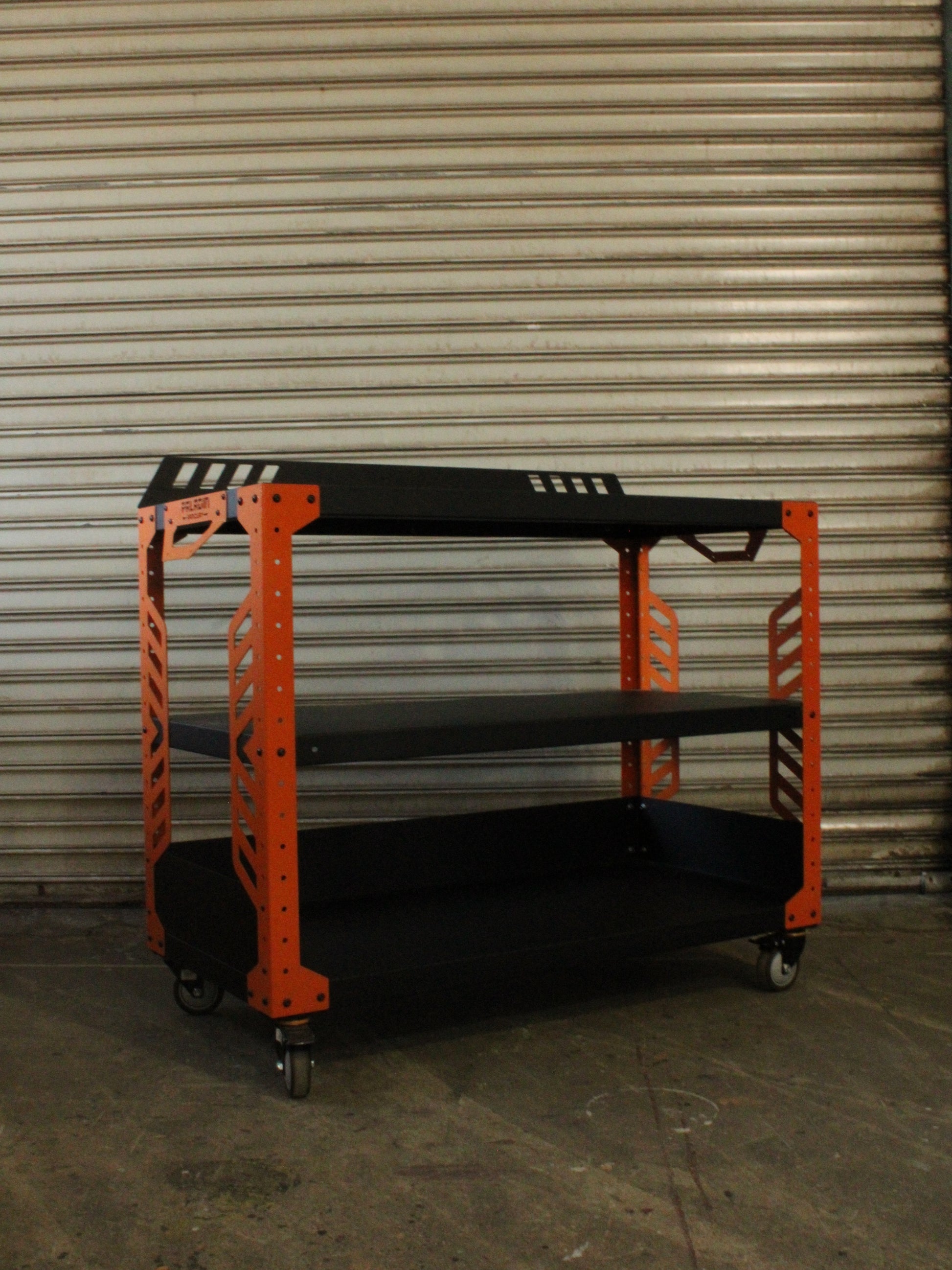 3 Tier Shelf with Side Panels: Our third variant offers ultimate functionality with a three-tier shelf configuration, including a tabletop and two extra shelves. The addition of side panels on the bottom shelf provides added stability and support, making it ideal for heavier items or equipment. Maximize storage capacity while maintaining a sleek and organized workspace.